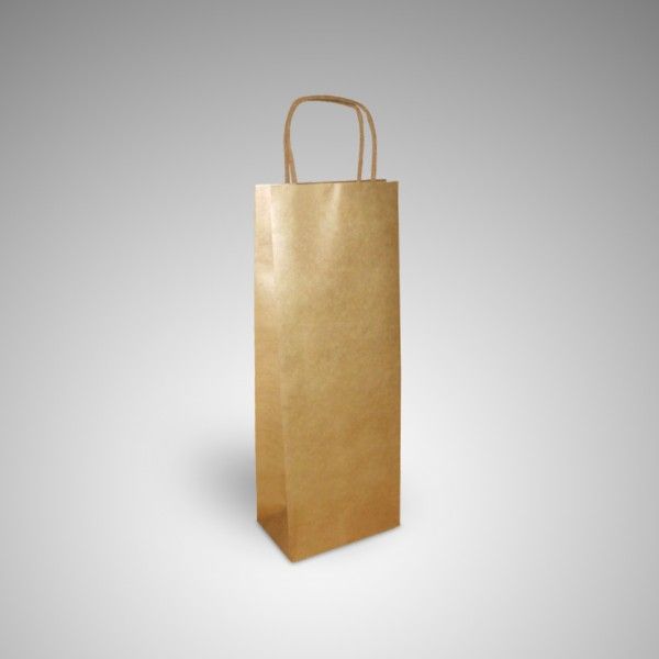 Saco para 1 garrafa, em papel kraft ou ouro liso com asa papel torcido.  Sacos em papel reciclável, 100% ecológico.